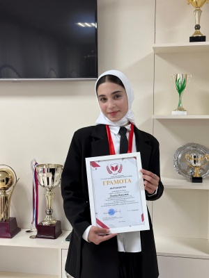 Яхьяева Максалина, ученица 8а класса МБОУ «СОШ№2 с. Гойты» победитель муниципального этапа Всероссийской олимпиады школьников по обществознанию.